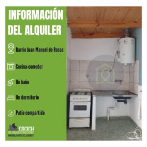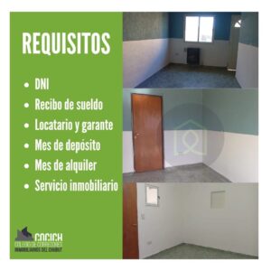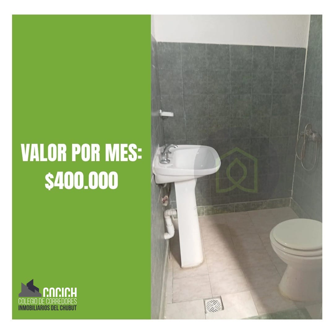 Departamento de 1 habitación en Trelew, con un alquiler mensual de 400.000 pesos (servicios no incluidos). Los requisitos para el alquiler son estándar e incluyen: